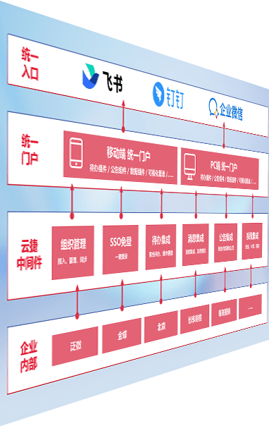 对协作平台提供支持服务,,,支持企业应用与协作平台对接,,包含组织同步、、、消息集成、、、待办集成等。。。支持目前主流的协作平台:钉钉、、企微和飞书。。。。